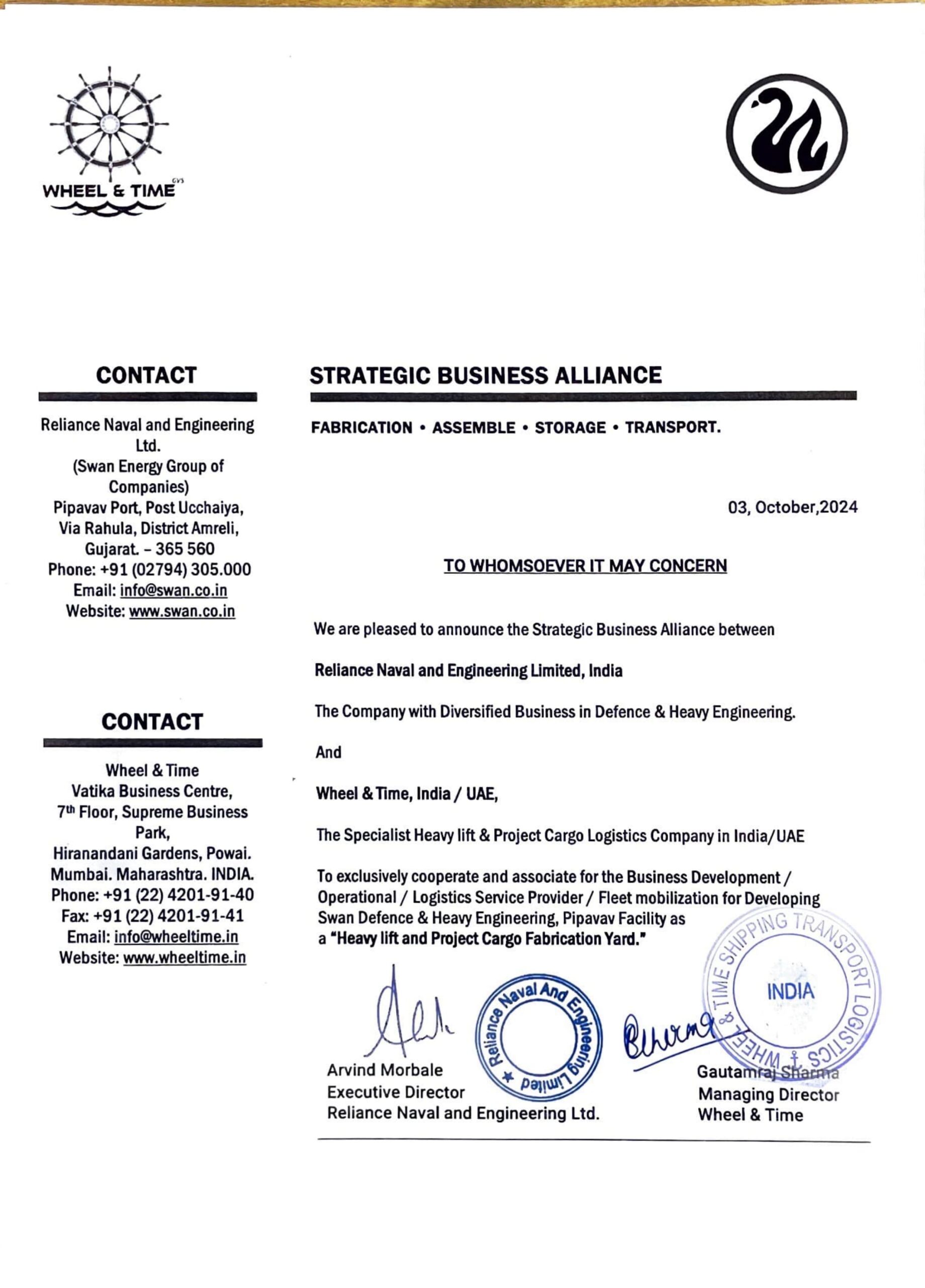 Wheel & Time is allianced with Swan Defence and Heavy Industries Limited.
